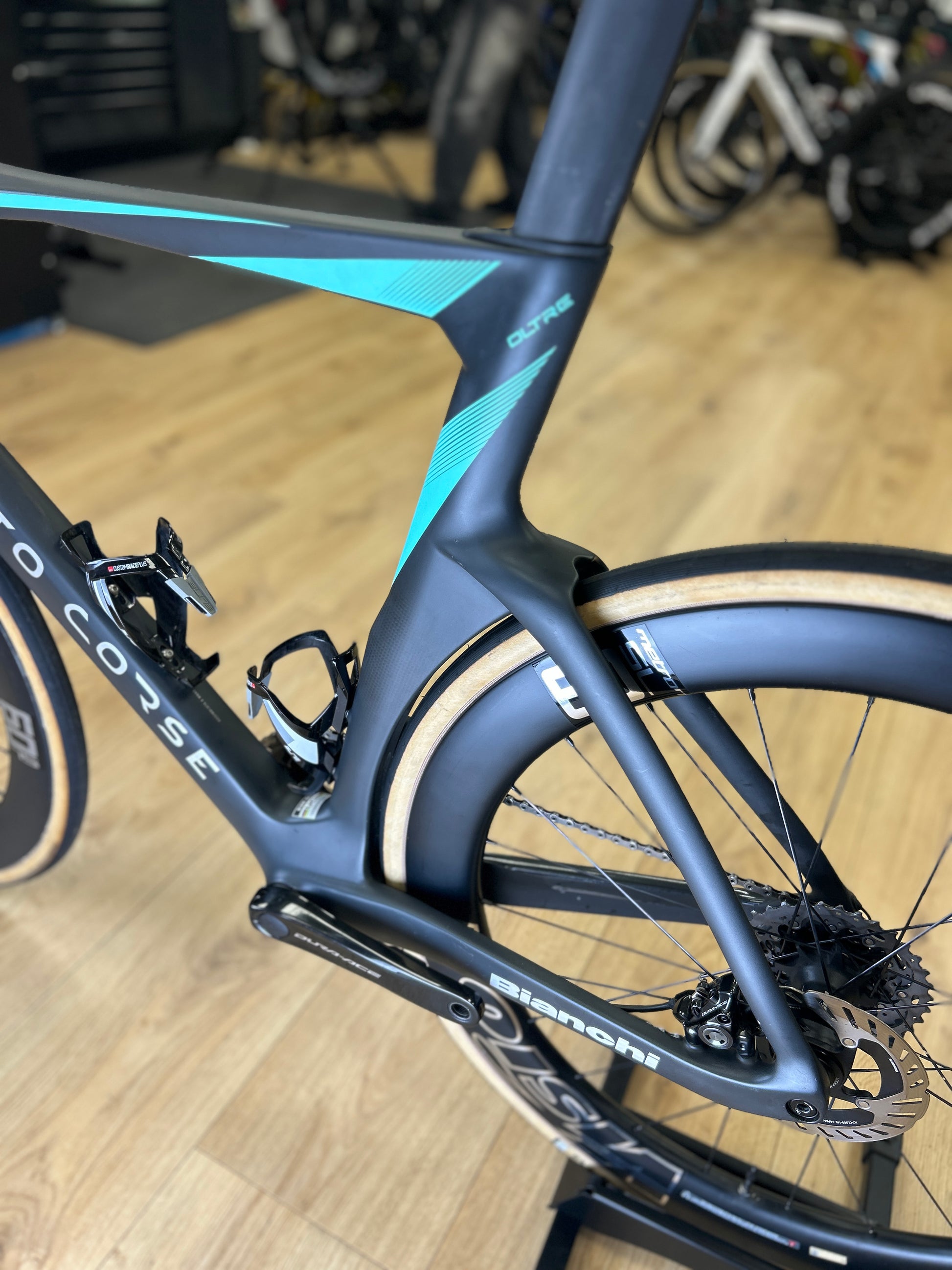 De Bianchi Oltre RC is een aerodynamische racefiets, gebouwd voor overwinningen in moderne wedstrijden en snelle ritten op alle terreinen. Het ideale model voor een aerodynamische rijstijl, dat maximale snelheid biedt op vlak terrein en in sprints. Zijn gestroomlijnde ontwerp en geavanceerde oplossingen minimaliseren de luchtweerstand, terwijl de wendbaarheid en reactiviteit behouden blijven. Bianchi is een legendarisch Italiaans merk met een geschiedenis sinds 1885, bekend om zijn kenmerkende 'Celeste' kleur en innovatieve racetechnologie.