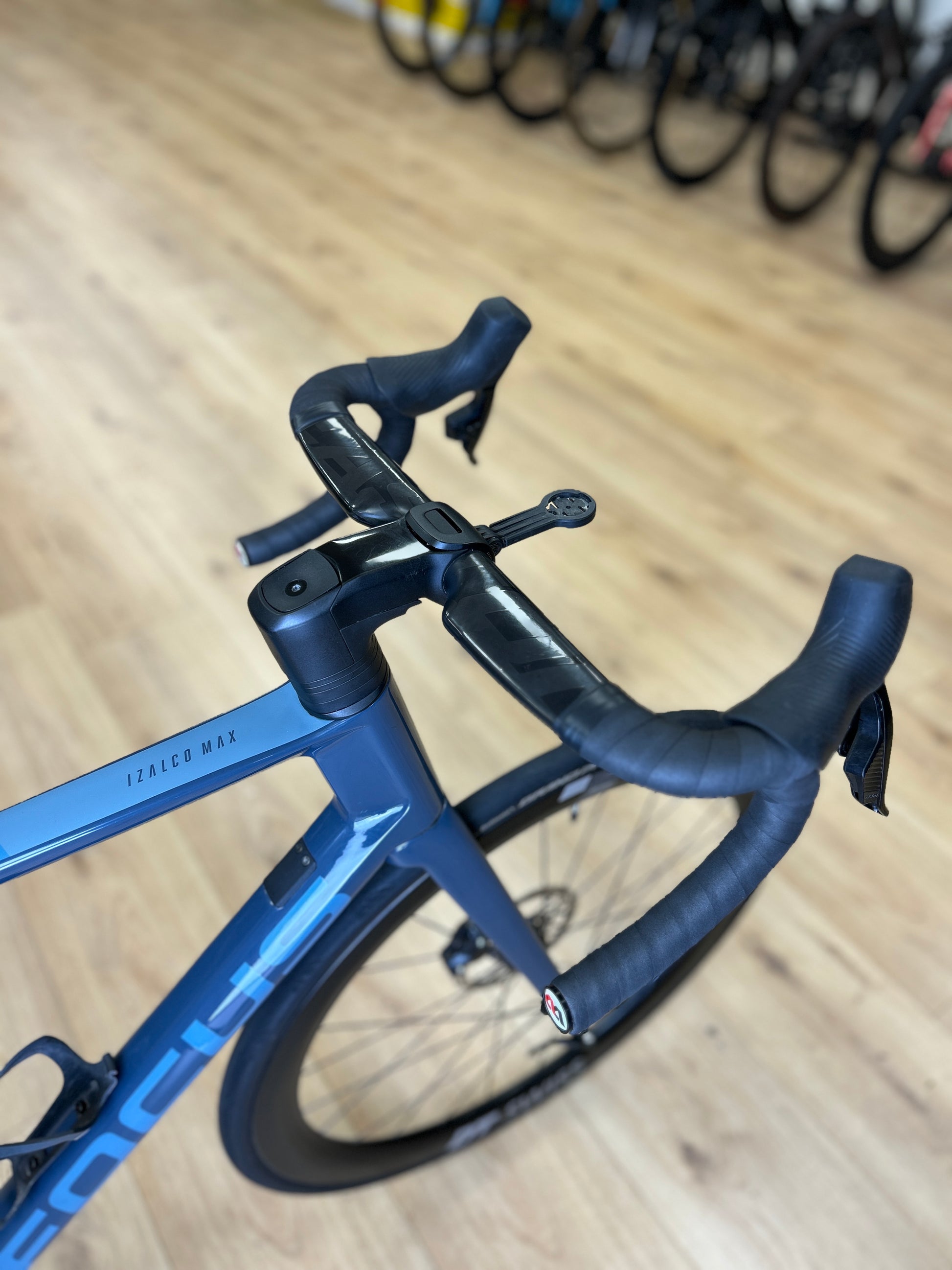 Dit is een aero-racefiets, ontworpen voor snelle wegwedstrijden en dynamische ritten. Het Izalco MAX 9.7 model kenmerkt zich door een koolstofframe met agressieve geometrie en geïntegreerde oplossingen voor verbeterde aerodynamica. Het merk Focus staat bekend om zijn innovatieve ontwikkelingen en samenwerkingen met professionele ploegen.