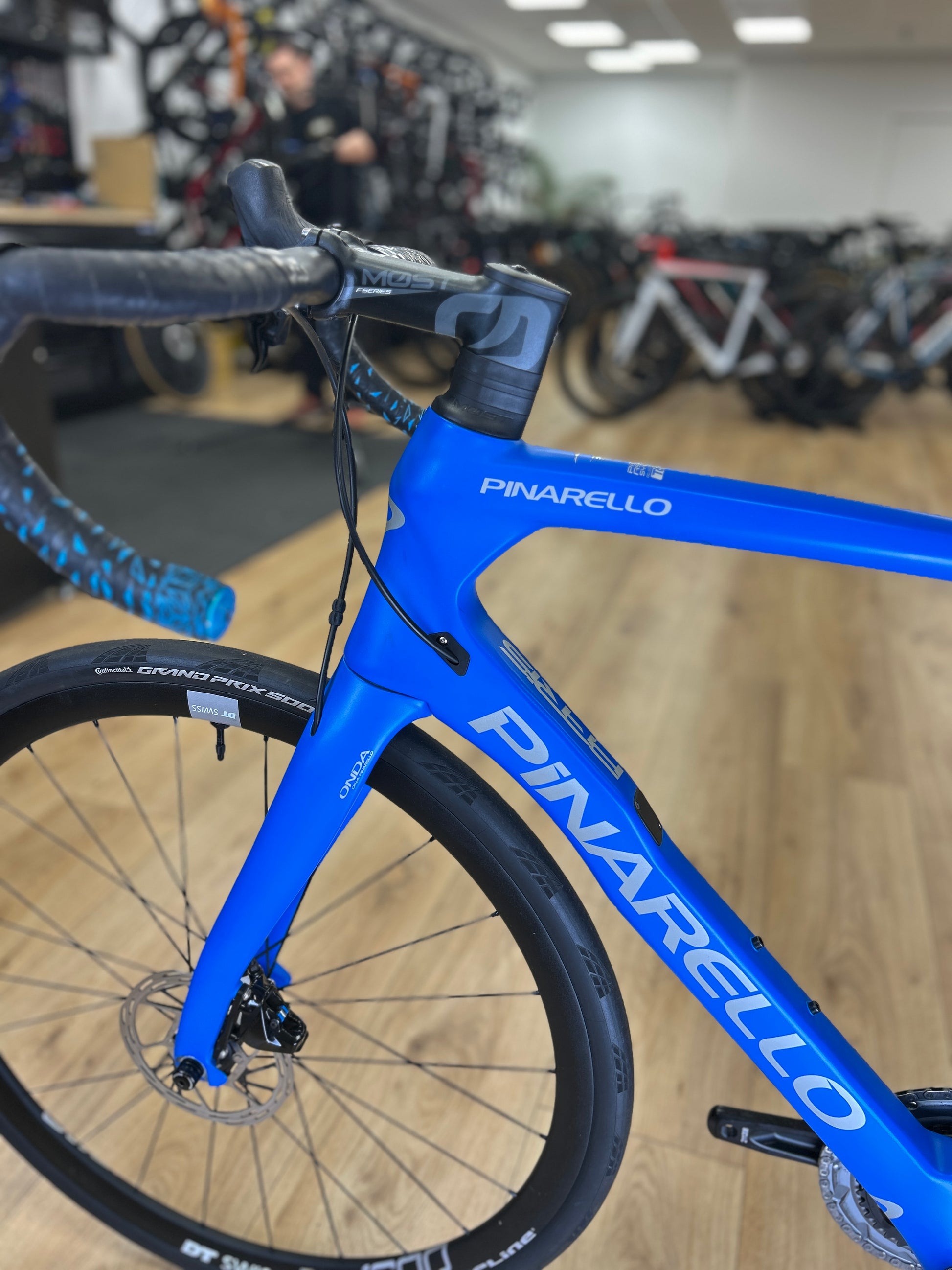 Dit is een aero-racefiets, ontworpen voor professionele wegwedstrijden en het bereiken van maximale snelheid. Zijn carbon frame toont een uniek aerodynamisch ontwerp dat minimale weerstand biedt met behoud van superieure controle bij hoge snelheden. Het merk Pinarello zet Italiaanse tradities van perfectie voort door innovatieve technologieën te combineren met compromisloos vakmanschap.